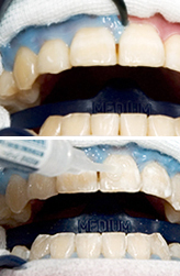歯肉保護剤を塗布した後に、ホワイトニング剤を塗ります。 -