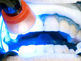 歯の表面に光を照射して、効果を促進します。 -