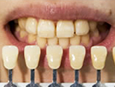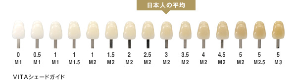 歯のシェードガイド(明るさを測定するガイド)に照らし合わせることで、歯の色を測ります。個人差はありますが、測定時よりも1〜4段階は白さが増します。