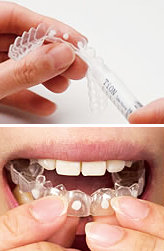 - 専用のマウストレーを作成し、そこにホワイトニングジェルを注入して装着